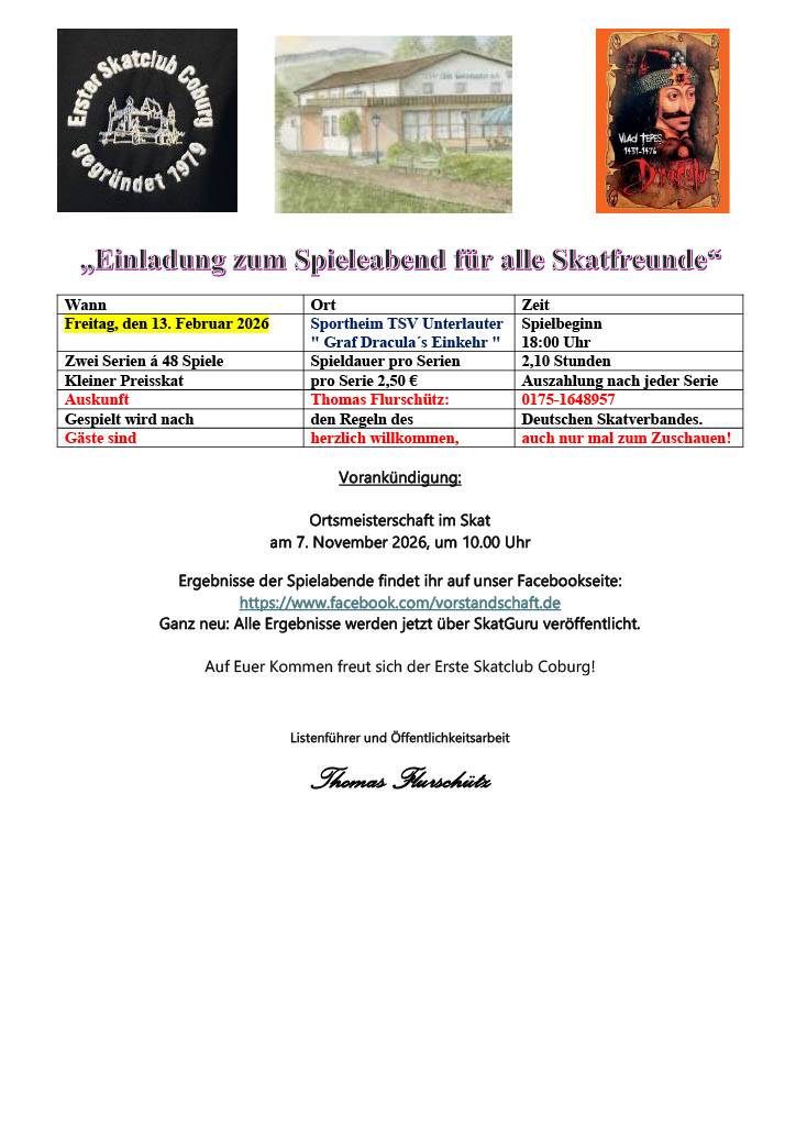 Am Freitag, den 13.02.26 sind wieder alle Lautertalerinnen und Lautertaler ab 12 Jahren zu unserem Freitags - Ding eingeladen!
