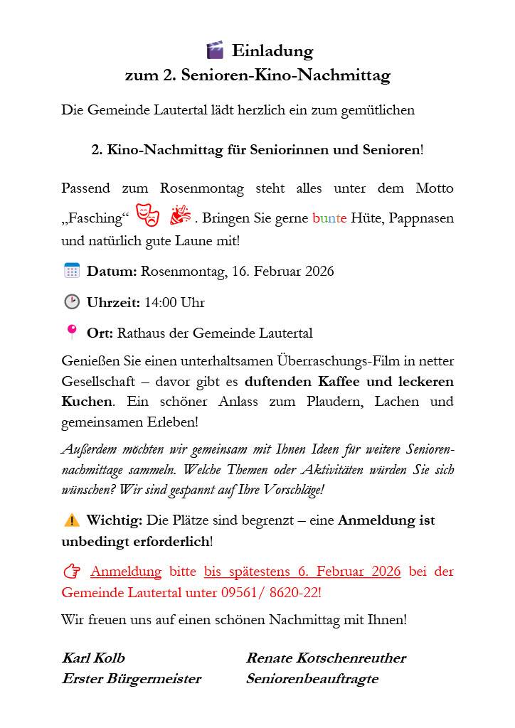 Einladung zum 2. Senioren-Kino-Nachmittag