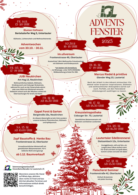 1) Mittwoch, 26. November 2025, für die Ortsteile Tiefenlauter und Neukirchen in der Evangelischen Jugendbildungsstätte Neukirchen, Am Hag 13