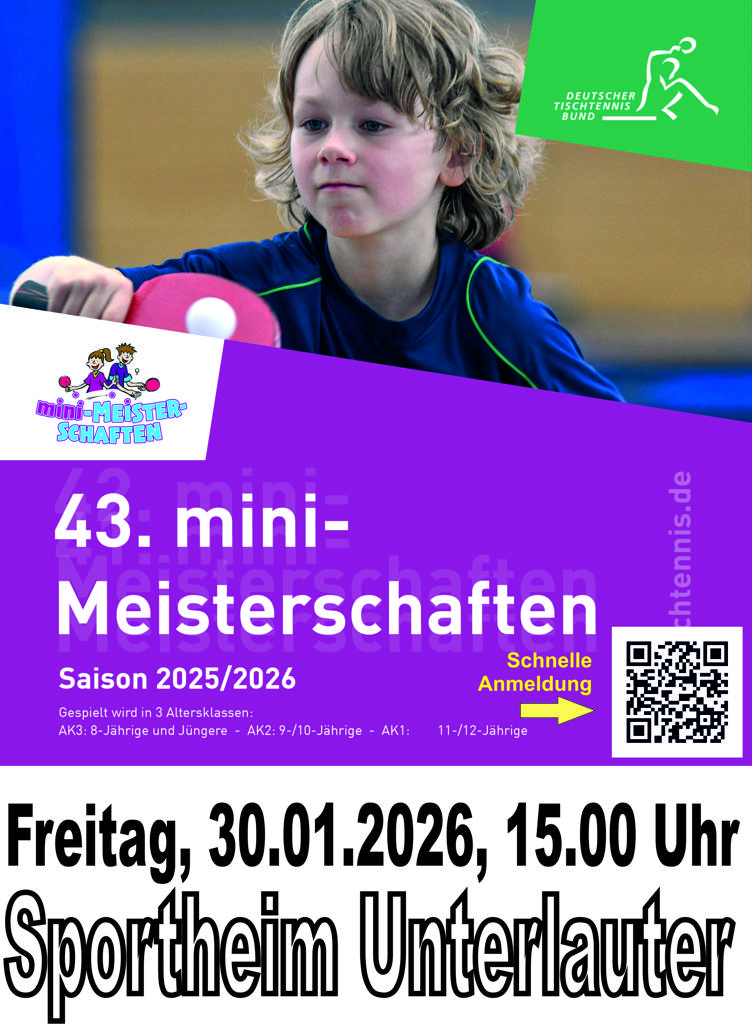 Auch in diesem Jahr richtet die Tischtennisabteilung des TSV Unterlauter wieder die beliebten Mini-Meisterschaften aus – ein Turnier speziell für Anfänger!