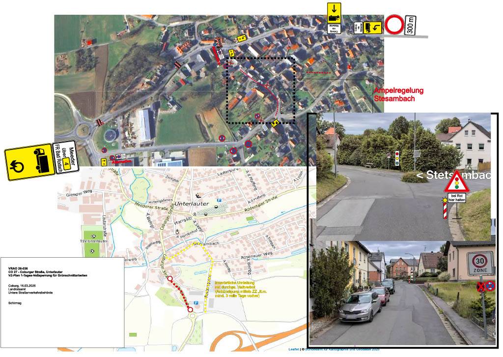 am Dienstag, 24.03.2026, wird die Kreisstraße CO 27 im Bereich des Kreisverkehrs in Richtung Ortseingang bis zur Kreuzstein-Apotheke aufgrund von Grünschnittarbeiten in der Zeit von 08.00 Uhr bis 16.00 Uhr vollständig für den Verkehr gesperrt.