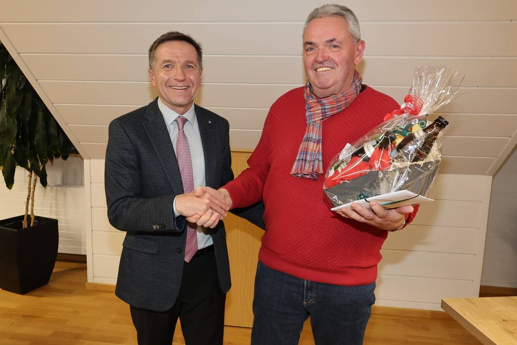 Karl Kolb überreichte Herzog zum Abschied einen Präsentkorb und schloss mit den Worten: „Du bist als Gast bei unseren Gemeinderatssitzungen immer herzlich willkommen. Und im gesellschaftlichen Leben von Lautertal bist Du sowieso präsent. Wir werden uns also nicht aus den Augen verlieren!“